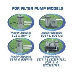 Spend more time enjoying your pool and less time maintaining it with this Intex 1000 GPH Easy Set Pool Filter Pump.Efficient filtration is essential for a quality swimming experience. The Intex 1000 GPH pool pump is easy to install, just hook up to the hoses and plugin. This pump increases water circulation and filtration and guarantees a cleaner pool.Designed for all 10, 12, 14, 15, and 16-foot Intex above-ground swimming pools. Also great for Sand-n-Sun, Aqua-Leisure and other pools with 1.25-inch diameter hose connections.The GFCI (ground fault circuit interrupter) feature on the 1000 GPH pump provides additional safety and protection. Your pump will shut off automatically if the electrical current is exposed to water. Included in this set is the Intex Easy Set Pool Type A or C Filter Cartridge Twin Pack to help keep your pool clean and clear.This Intex 1000 GPH Easy Set Pool Filter Pump keeps your pool crystal clean and all summer long so you can worry less and swim more.