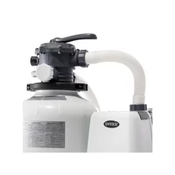 The Intex 2800 GPH Above Ground Pool Sand Filter Pump with Automatic Timer provides cool, refreshing, clear water, and less hassle every swim season.If you are tired of buying and replacing pool filter cartridges, this filter is the one for you. With virtually no maintenance, your sand pump only needs replacement every five years.This sand pump features a powerful motor, 6-function control, and a built-in automatic timer. It meets the UL standards and is an excellent upgrade to the filter cartridge system on your Intex Above Ground Swimming Pool (Easy Set, Metal Frame and Ultra Frame — up to 17,200 gallons).This package also includes the Intex Krystal Clear Saltwater System. Its unique 2 stage technology uses an E.C.O. (electrocatalytic oxidation) process in which water molecules are split into highly powerful oxidants to destroy organic contaminants.Next, the amount of natural chlorine generated by this saltwater system is greatly reduced, which results is clean water without the potential harsh side effects of packaged pool chemicals. It requires a filter pump with a flow rate between 700 to 3,000 gallons per hour and is for use with a maximum pool size of 7,000 gallons. Maintenance is a part of every swimming pool and with this Intex Pool Sand Filter Pump and Krystal Clear Saltwater System you’ll have easy to use tools for the job, cutting down on your time spent cleaning.