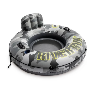 This 6-Pack of Intex Camo River Run I Inflatable Tube is designed to fit an adult and it’s perfect for tubing down the river, in the lake, or in the pool.The inflatable rafts are designed for high-performance fun. The bottom of the tube has a mesh layer where the water keeps you cool in the sun. The cup holders and backrest add comfort to the water. The 18 gauge (0.46mm) vinyl material is durable and cool to the touch. You never have to ride the black rubber tubes that can give you tube rash or that uncomfortable burning sensation in hot weather. The Intex River Run I Inflatable Tube also features a quick-release valve that deflates the tube in less than 60 seconds. A separate air chamber for the backrest lets you set the firmness just the way you like it. Tubing veterans, as well as new tubers, will love the 6-Pack of Intex Camo River Run I Inflatable Tube.