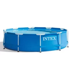 Beat the heat and make a splash in the Round Above-Ground Swimming Pool from Intex. Including a filter pump and cover, you’ll have everything you need to enjoy your pool more and clean less. The pool measures 10 feet in diameter and 30 inches tall, providing enough space to splash, play, and relax. It’s easy to assemble and maintain while fitting perfectly on a flat surface in your backyard. Constructed of durable PVC materials, this pool will last through years of splashing fun and hold strong through the elements. This pool comes with a 330 GPH filter pump to help keep your pool water safe and pure.The easy-set cover fits securely around your swimming pool when not in use. With a durable 7-gauge vinyl construction, this cover will hold strong against the elements. Ensure the best swim season year after year with the Intex Swimming Pool and Cover Set. Disclaimer: Please review your HOA rules and restrictions before purchasing this product. Not all housing agencies permit private above-ground pools.