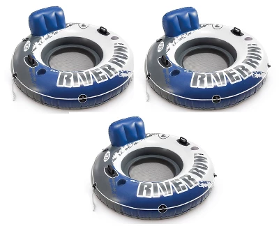 Tese Intex River Run I Inflatable Tubes are designed to fit an adult, andthey are perfect for tubing down the river, in the lake or in the pool. The Intex River Run 1 is designed for high-performance fun without the hassle of black rubber tubes that can give you tube rash or that uncomfortable burning sensation in hot weather. The Intex River Run I Inflatable Tube also features a quick-release valve that deflates the tube in less than 60 seconds. Its separate air chamber for its back rest lets you set the firmness just the way you like it. Tubing veterans, as well as new tubers will love the Intex River Run I Inflatable Tube.