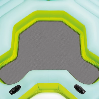 Escape to the open waters! The INTEX Seascape Island is the ultimate water hangout for family and friends.Designed with (2) oversized backrests for lounging you can unwind in the sun and relax with loved ones comfortably. A convenient built-in cooler area keeps your beverages cool and the (4) cup holders keep your drinks secure while floating down the river or sailing on the lake. The boarding platform combined with 2 durable grab handles, and grab rope makes it easy to get in and out of the island so that you can effortlessly take a dip in the water and return to the floating island with ease. A mesh bottom floor allows water to seep through to keep your feet refreshed and cooled off in the water. The inflatable island features an exciting color palette of white, blue, and green so that you feel the bright island vibes anywhere you are floating.Relax and soak up the sun this summer season with the INTEX Seascape Island Inflatable Water Lounge.