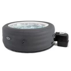 Let your worries bubble away and unwind in the relaxing Intex Simple Spa Inflatable Hot Tub with Filter Pump and Grey Cover.Traditional hot tubs are large, messy, and expensive, making for a massive commitment. The inflatable spa makes owning a hot tub simple and easy, letting you enjoy a warm soak without the hassle of a permanent hot tub. All the ideal features of a hot tub are included, from the 100 powerful bubble jets that offer a refreshing massage to the adjustable heating system that ensures you can relax in your ideal temperature. Mesh construction holds firm all season long, and the thermal ground cloth provides the temperature of the yard doesn’t interfere with the water.The included insulated grey cover ensures your hot tub is protected and ready for use when you next need it. The system includes the heater/filter/blower system, 2 filter cartridges, a thermal ground cloth, an inflation hose, a convenient carry bag, and a floating chlorine dispenser with a test strip.With the easy-to-replace filter cartridge and easy button controls, enjoying and maintaining the spa has never been simpler. Pamper yourself with the Intex Simple Spa Inflatable 4-Person Hot Tub Spa.
